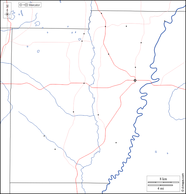 d-maps > 美国 > 佛罗里达州 > 卡尔霍恩县 > 边界, 水文学, 主要城市, 道路, 白