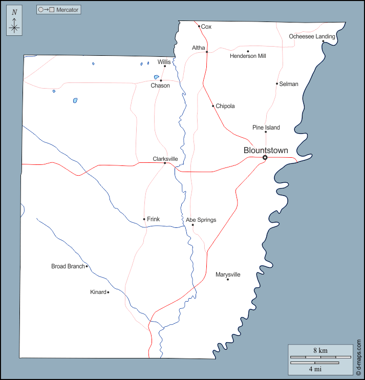 d-maps > 美国 > 佛罗里达州 > 卡尔霍恩县 > 大纲, 水文学, 主要城市, 道路, 名称