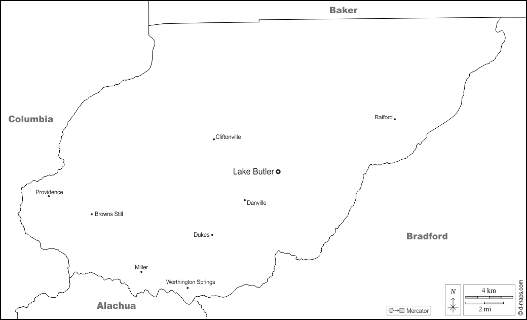 d-maps > 美国 > 佛罗里达州 > 联合县 > 边界, 主要城市, 名称, 白