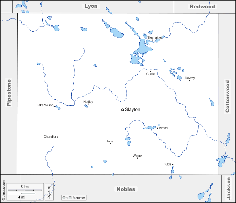 Avoca, Chandler, Currie, Dovray, Fulda, Hadley, Iona, Lake Wilson, Slayton, The Lakes, Wirock.