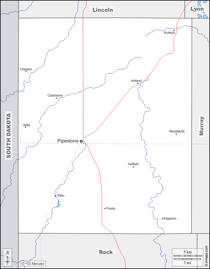 d-maps > 美国 > 明尼蘇達州 > 石板县 > 边界, 水文学, 主要城市, 道路, 名称