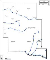 d-maps > 美国 > 密西西比州 > 马歇尔县 > 边界, 水文学, 道路, 白