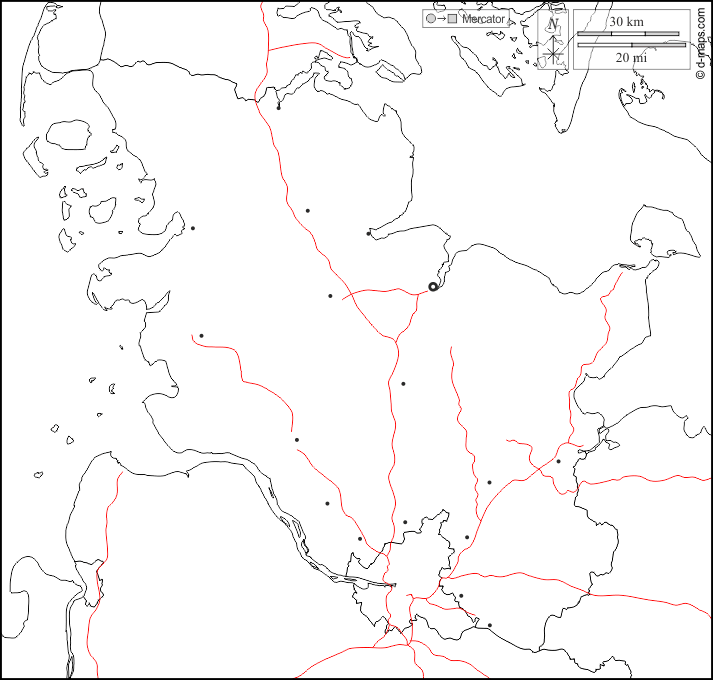 d-maps > 欧洲 > 德国 > 石勒苏益格-荷尔斯泰因州 > 边界, 主要城市, 道路, 白