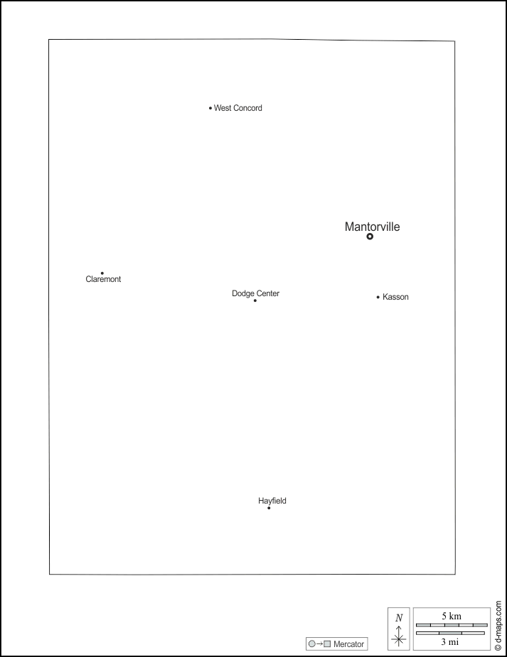 Claremont, Dodge Center, Hayfield, Kasson, Mantorville, West Concord.