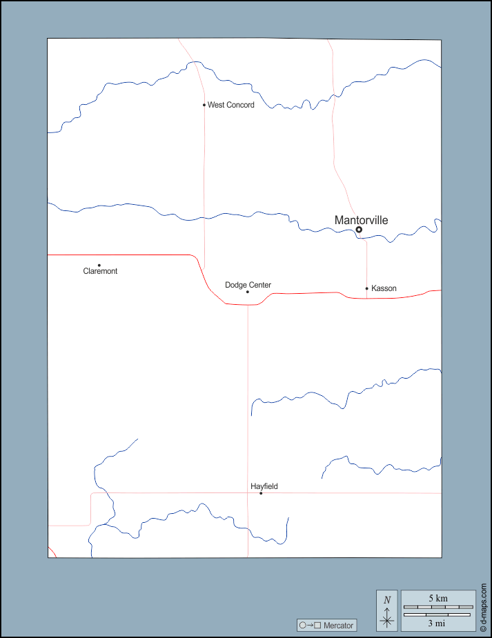 Claremont, Dodge Center, Hayfield, Kasson, Mantorville, West Concord.