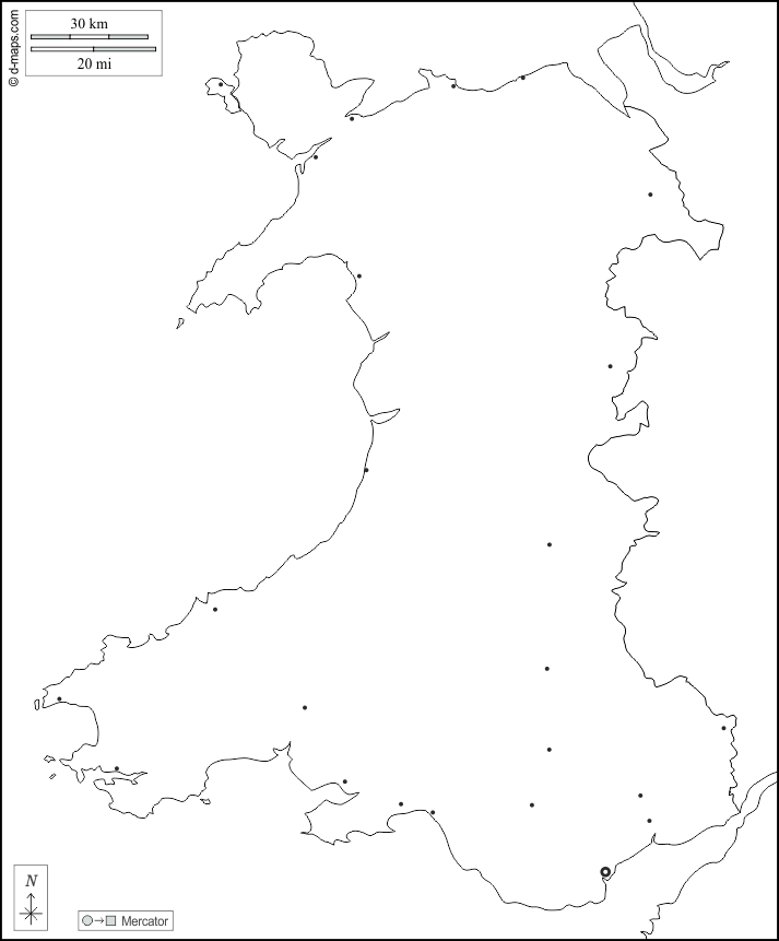 d-maps > 欧洲 > 英国 > 威爾士 > 边界, 主要城市, 白