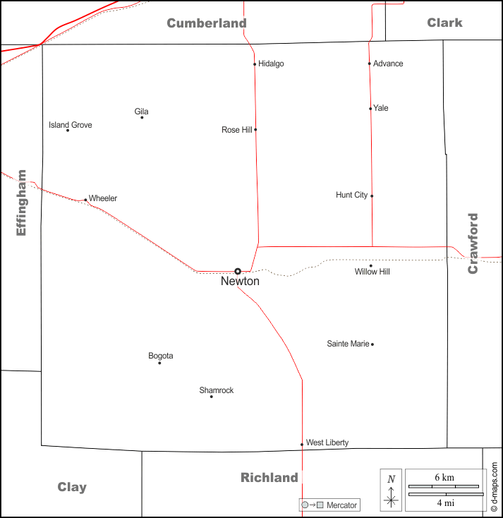 Advance - Bogota - Gila - Hidalgo - Hunt City - Island Grove - Newton - Rose Hill - Sainte Marie - Shamrock - West Liberty - Wheeler - Willow Hill - Yale