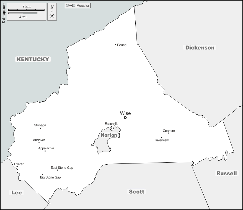 d-maps > 美国 > 弗吉尼亚州 > 怀斯县 > 边界, 主要城市, 名称
