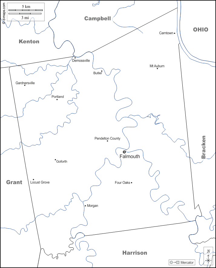 d-maps > 美国 > 肯塔基州 > 彭德尔顿县 > 边界, 水文学, 主要城市, 名称, 白