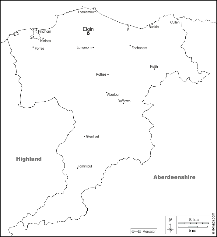 Aberlour, Buckie, Cullen, Dufftown, Elgin, Findhorn, Fochabers, Forres, Glenlivet, Keith, Kinloss, Longmorn, Lossiemouth, Rothes, Tomintoul.