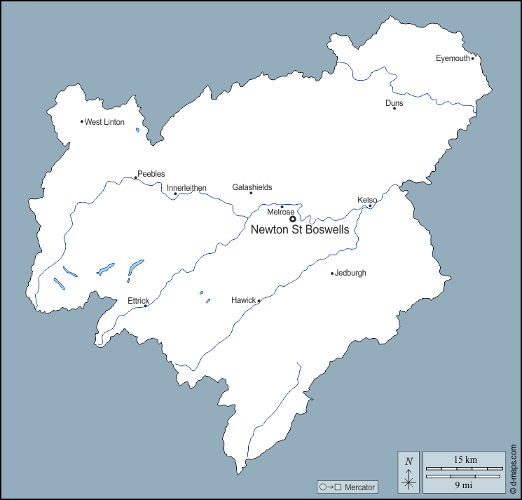 Duns, Ettrick, Eyemouth, Galashields, Hawick, Innerleithen, Jedburgh, Kelso, Melrose, Newton St Boswells, Peebles, West Linton.