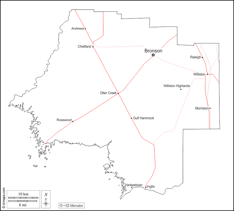 d-maps > 美国 > 佛罗里达州 > 利维县 > 大纲, 主要城市, 道路, 名称, 白