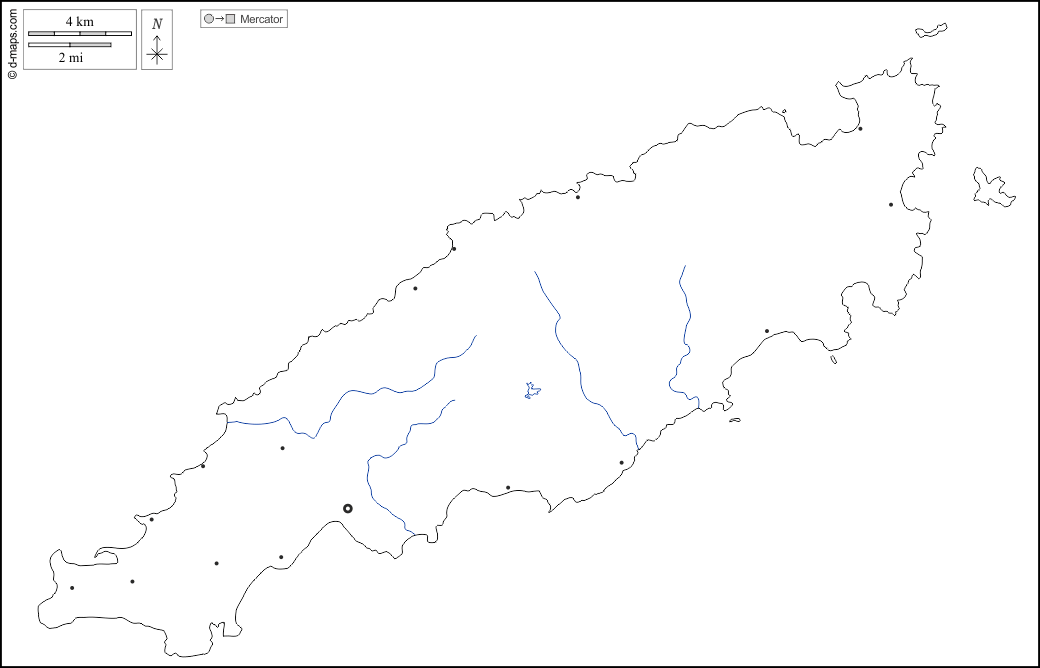 d-maps > 美洲 > 多巴哥岛 > 边界, 水文学, 主要城市, 白