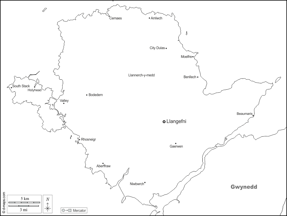 d-maps > 欧洲 > 英国 > 安格尔西岛 > 边界, 主要城市, 名称, 白