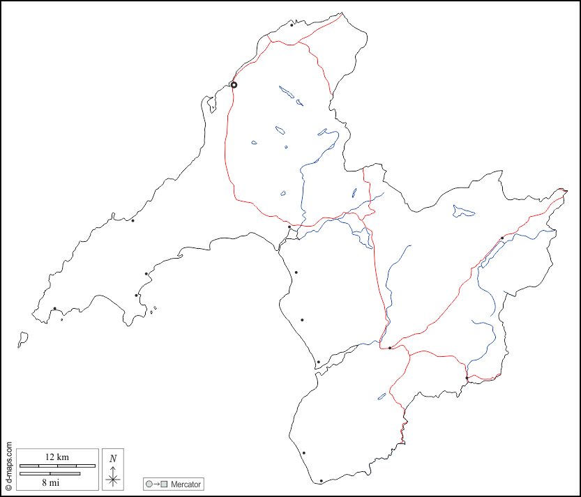 d-maps > 欧洲 > 英国 > 格温内斯 > 大纲, 水文学, 主要城市, 道路, 白