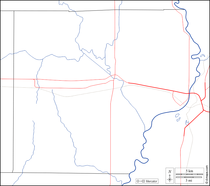 d-maps > 美国 > 伊利诺伊州 > 劳伦斯县 > 边界, 水文学, 道路, 白