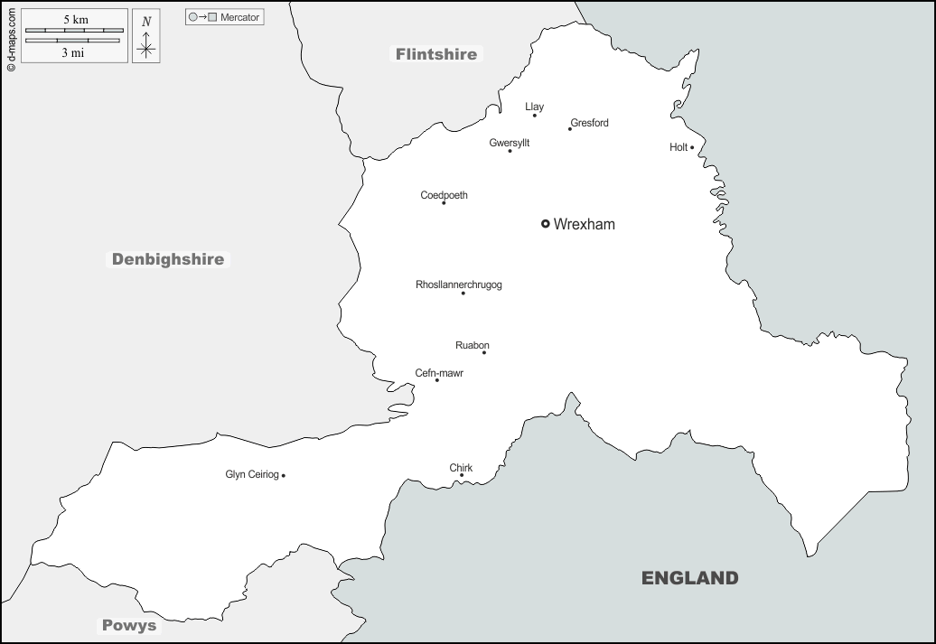 Cefn-mawr, Chirk, Coedpoeth, Glyn Ceiriog, Gresford, Gwersyllt, Holt, Llay, Rhosllannerchrugog, Ruabon, Wrexham.