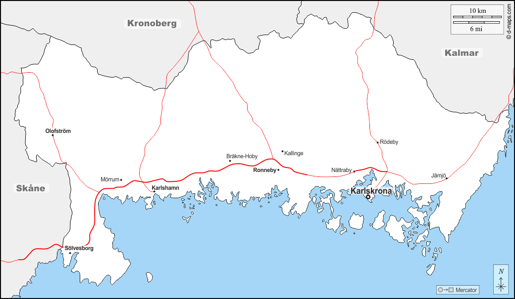 d-maps > 欧洲 > 瑞典 > 布萊金厄 > 边界, 主要城市, 道路, 名称