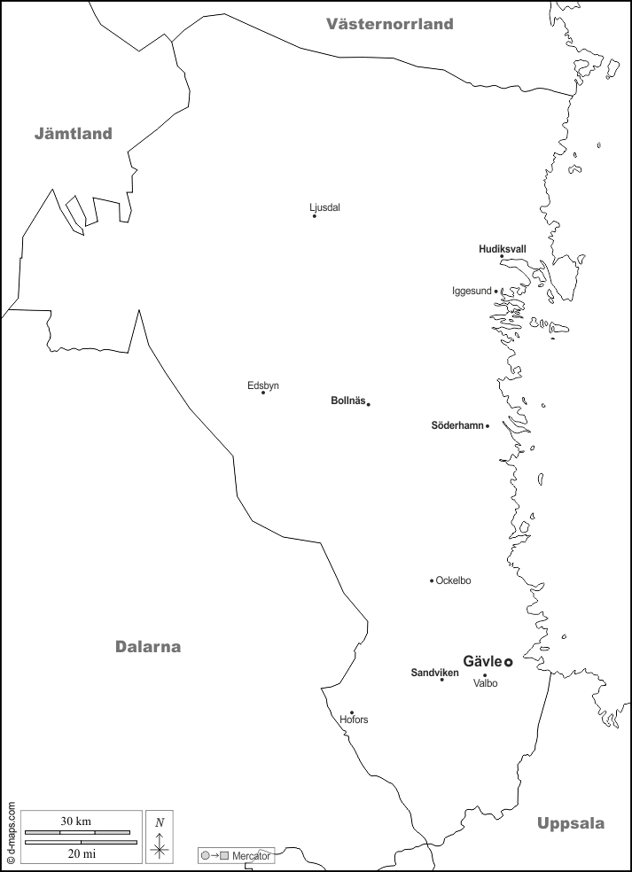 Bollnäs, Edsbyn, Gävle, Hofors, Hudiksvall, Iggesund, Ljusdal, Ockelbo, Sandviken, Söderhamn, Valbo.