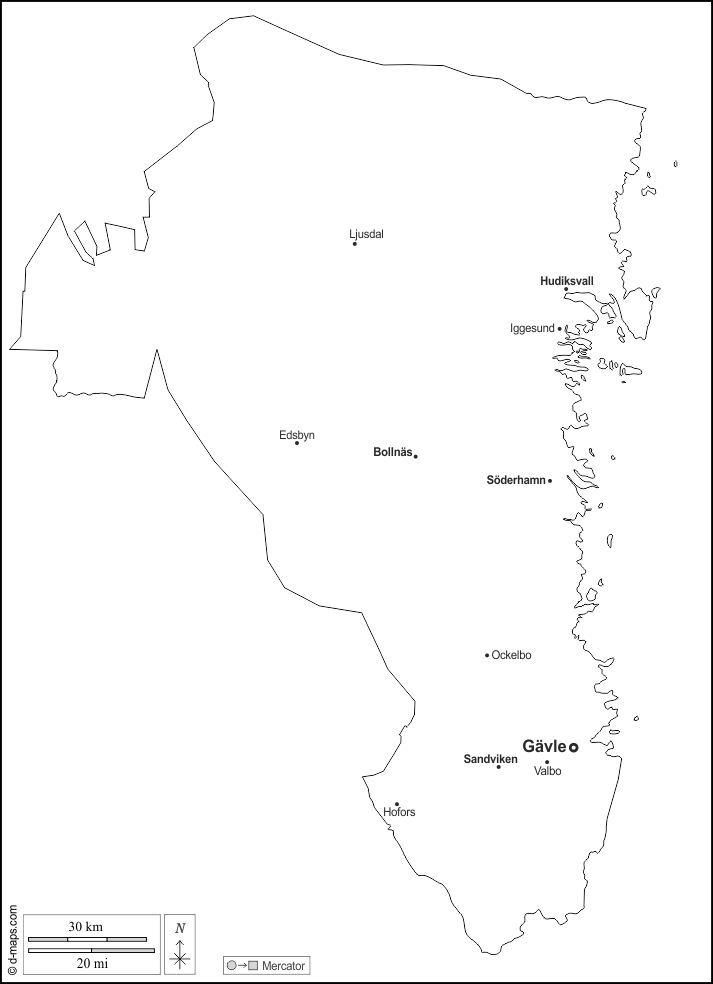 Bollnäs, Edsbyn, Gävle, Hofors, Hudiksvall, Iggesund, Ljusdal, Ockelbo, Sandviken, Söderhamn, Valbo.