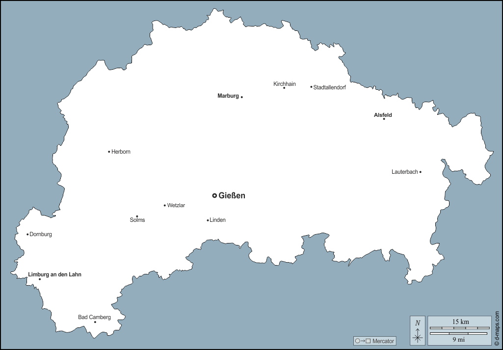 d-maps > 欧洲 > 德国 > गिसेन प्रशासनिक जिला > 大纲, 主要城市, 名称