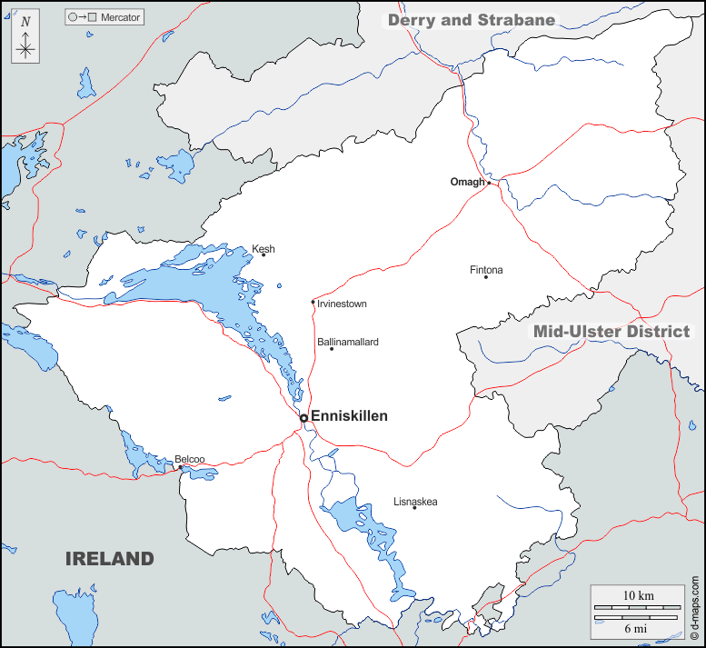 Ballinamallard, Belcoo, Enniskillen, Fintona, Irvinestown, Kesh, Lisnaskea, Omagh.