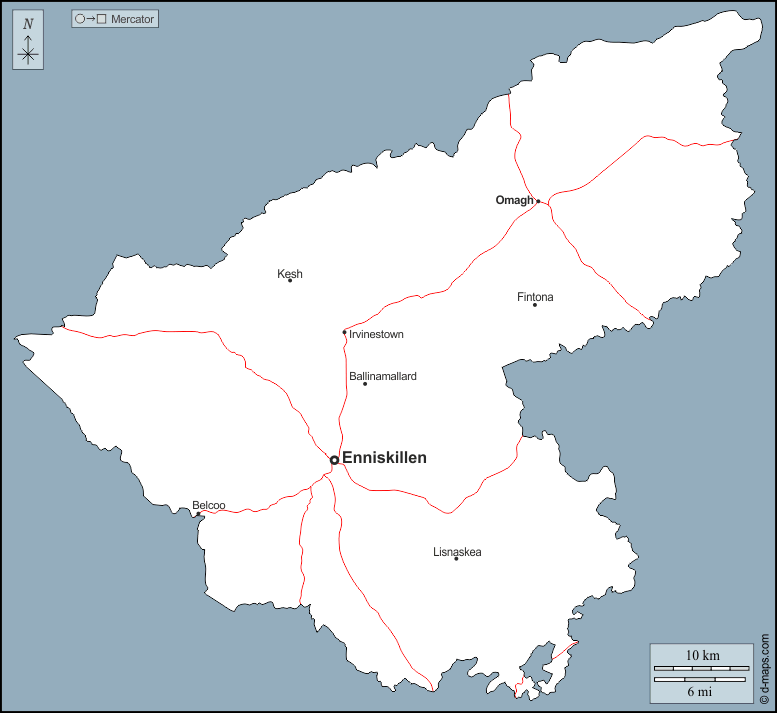 Ballinamallard, Belcoo, Enniskillen, Fintona, Irvinestown, Kesh, Lisnaskea, Omagh.