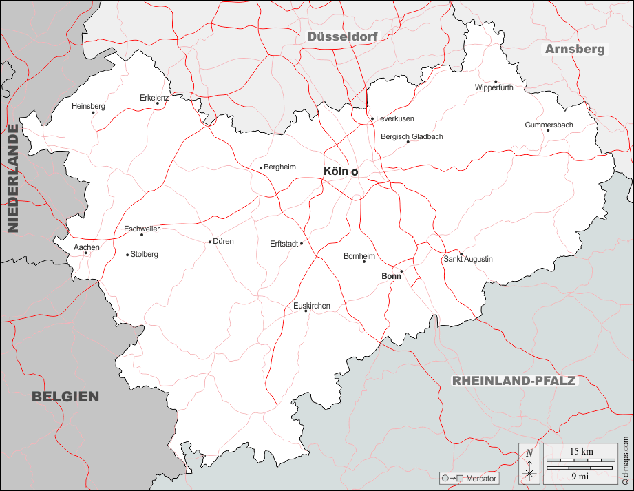 d-maps > 欧洲 > 德国 > कोलोन प्रशासनिक जिला > 边界, 主要城市, 道路, 名称