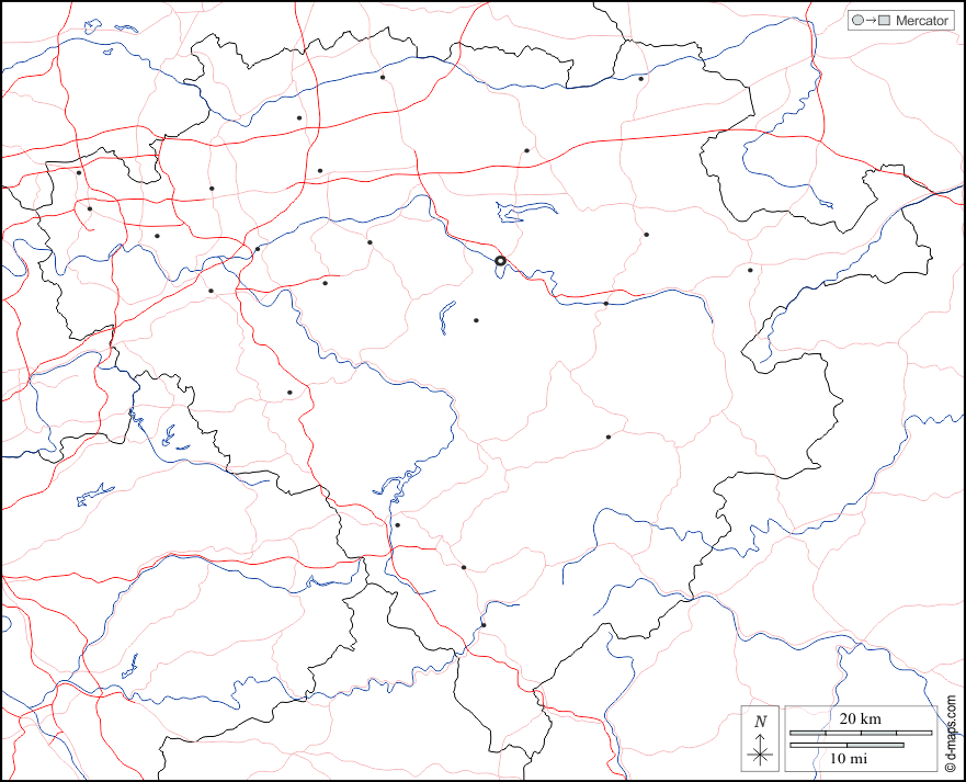 d-maps > 欧洲 > 德国 > 阿恩斯贝格行政区 > 边界, 水文学, 主要城市, 道路, 白