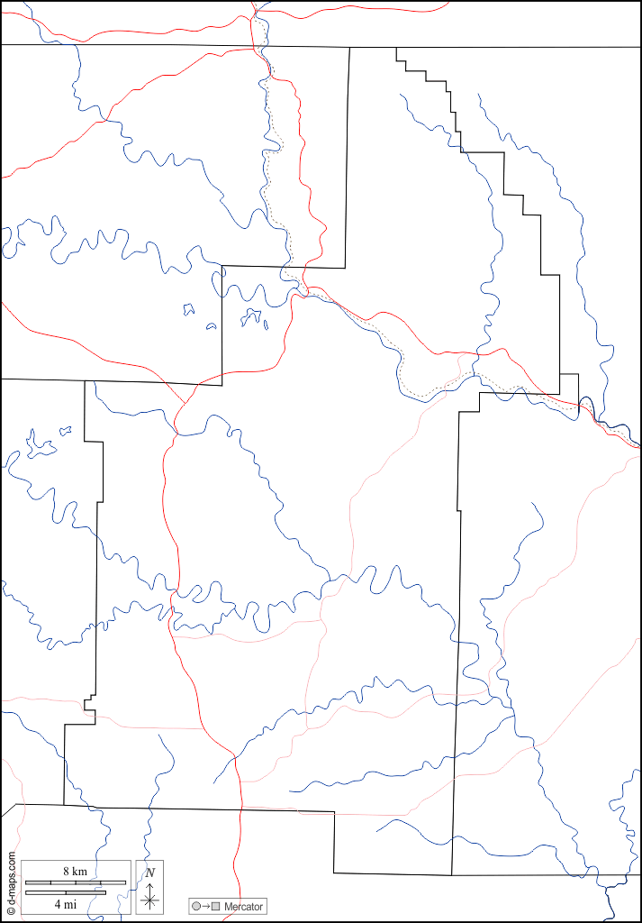 d-maps > 美国 > 阿肯色州 > 夏普县 > 边界, 水文学, 道路, 白