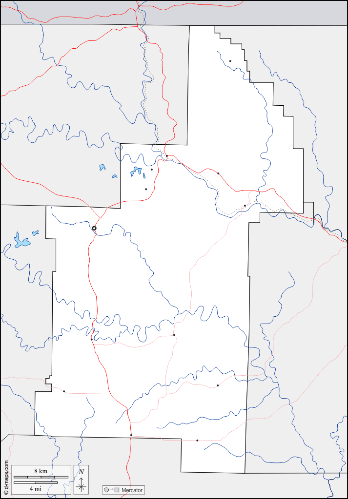 d-maps > 美国 > 阿肯色州 > 夏普县 > 边界, 水文学, 主要城市, 道路
