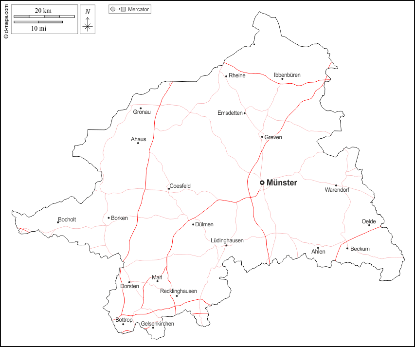 d-maps > 欧洲 > 德国 > 明斯特行政区 > 大纲, 主要城市, 道路, 名称, 白