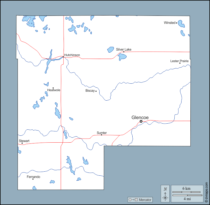 Biscay, Fernando, Glencoe, Heatwole, Hutchinson, Lester Prairie, Silver Lake, Stewart, Sumter, Winsted.