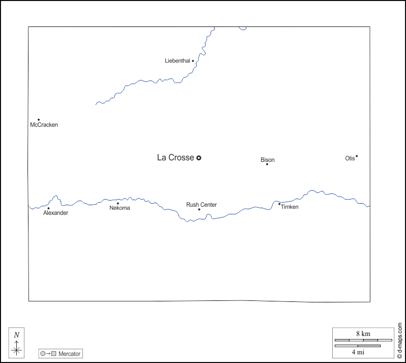 Alexander, Bison, La Crosse, Liebenthal, McCracken, Nekoma, Otis, Rush Center, Timken.