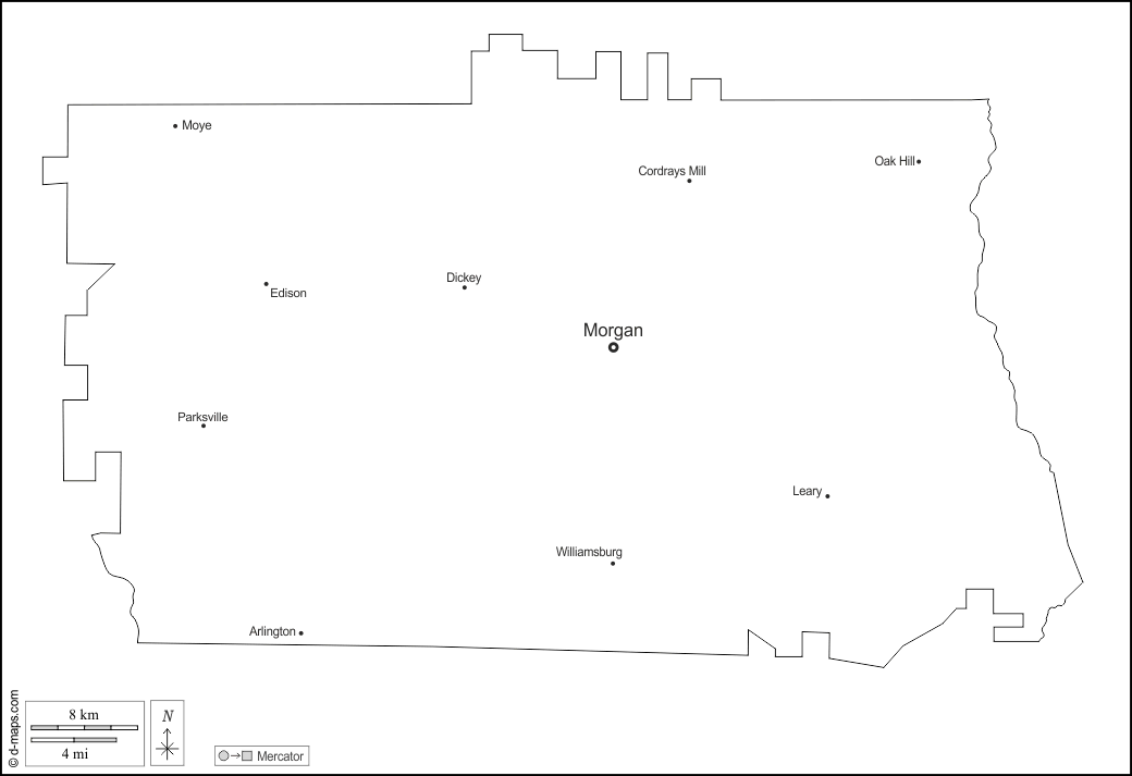 Arlington, Cordrays Mill, Dickey, Edison, Leary, Morgan, Moye, Oak Hill, Parksville, Williamsburg.