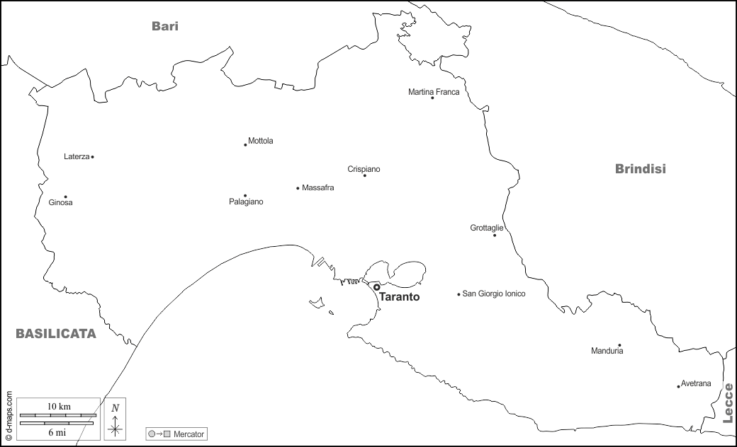 d-maps > 欧洲 > 意大利 > 塔兰托 > 边界, 主要城市, 名称, 白