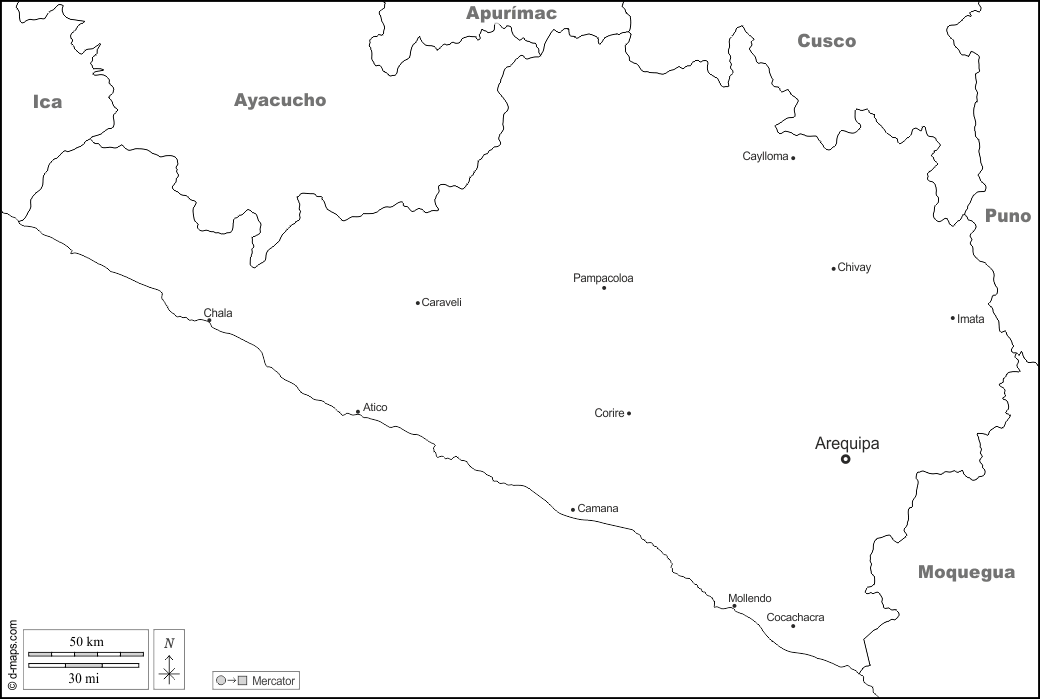 d-maps > 美洲 > 秘鲁 > 阿雷基帕 > 边界, 主要城市, 名称, 白