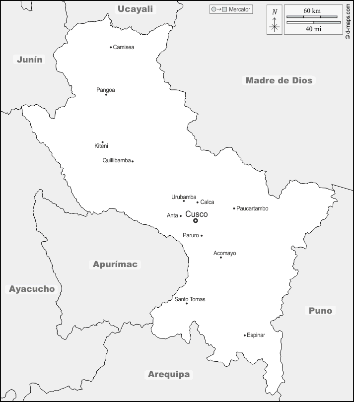 d-maps > 美洲 > 秘鲁 > 庫斯科 > 边界, 主要城市, 名称
