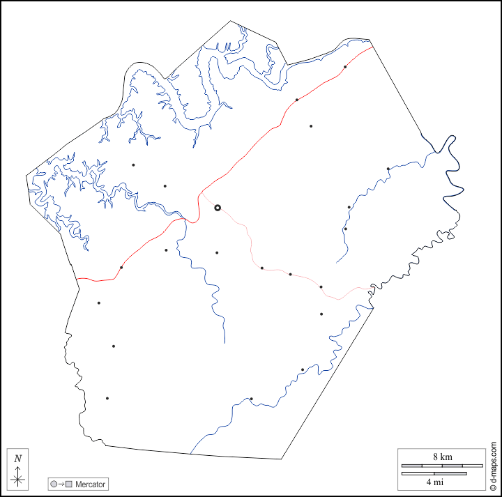 d-maps > 美国 > 肯塔基州 > 韦恩县 > 大纲, 水文学, 主要城市, 道路, 白