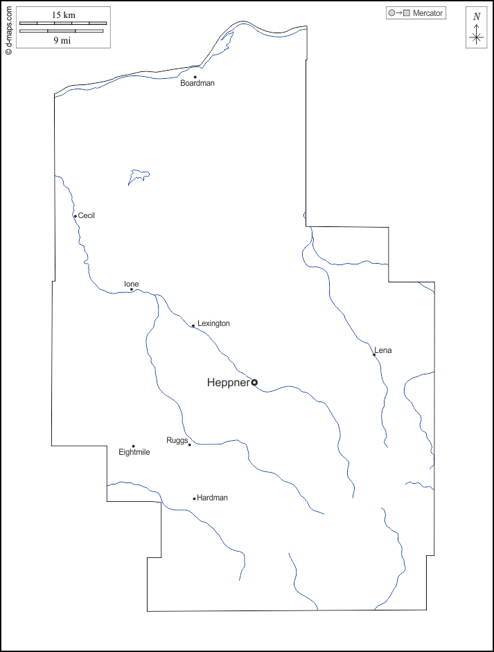 Boardman, Cecil, Eightmile, Hardman, Heppner, Ione, Lena, Lexington, Ruggs.
