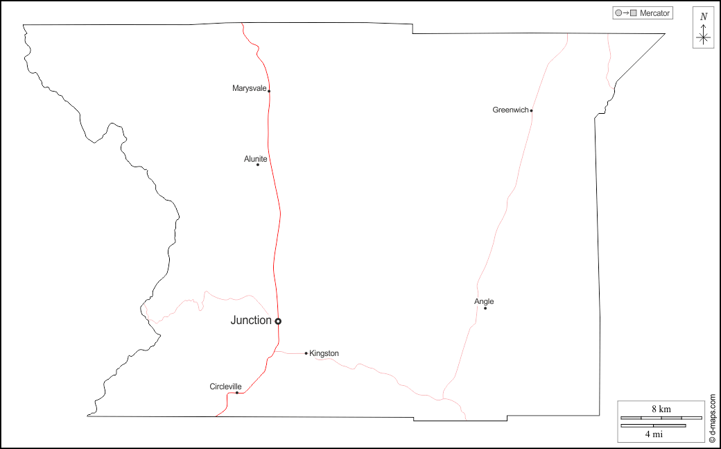 Alunite, Angle, Circleville, Greenwich, Junction, Kingston, Marysvale.
