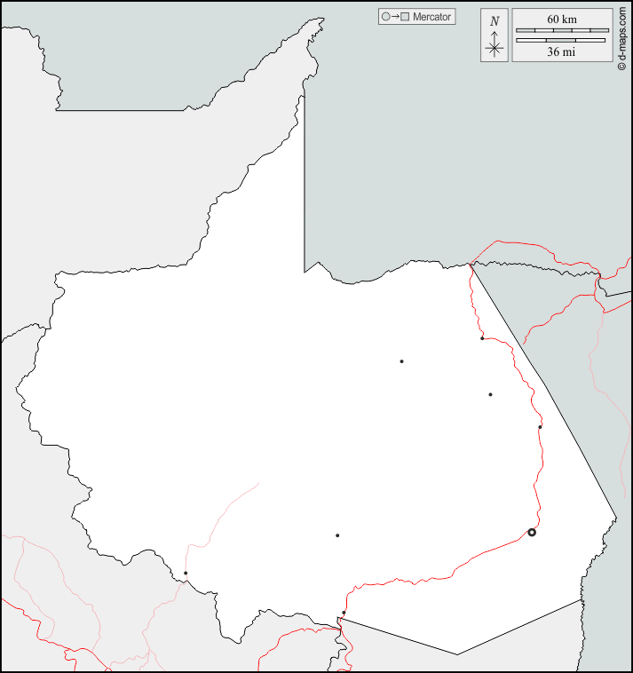 d-maps > 美洲 > 秘鲁 > 马德雷德迪奥斯大区 > 边界, 主要城市, 道路