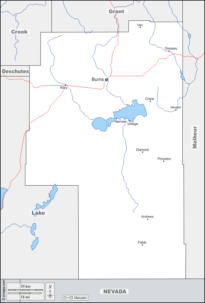Andrews, Burns, Crane, Diamond, Drewsey, Fields, Narrows, Princeton, Riley, Van, Venator, Voltage.