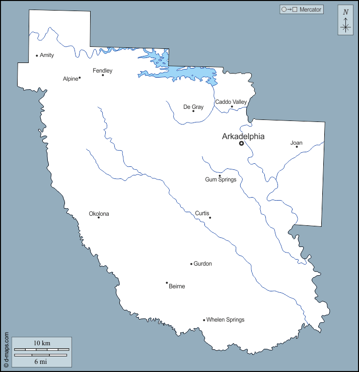 d-maps > 美国 > 阿肯色州 > 克拉克县 > 大纲, 水文学, 主要城市, 名称
