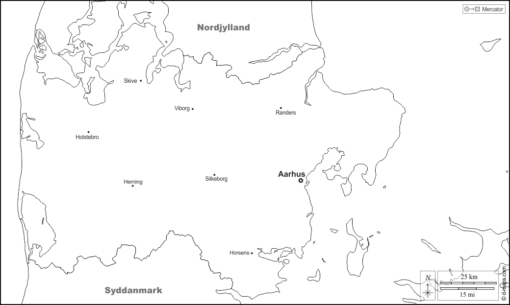 Aarhus, Herning, Holstebro, Horsens, Randers, Silkeborg, Skive, Viborg.