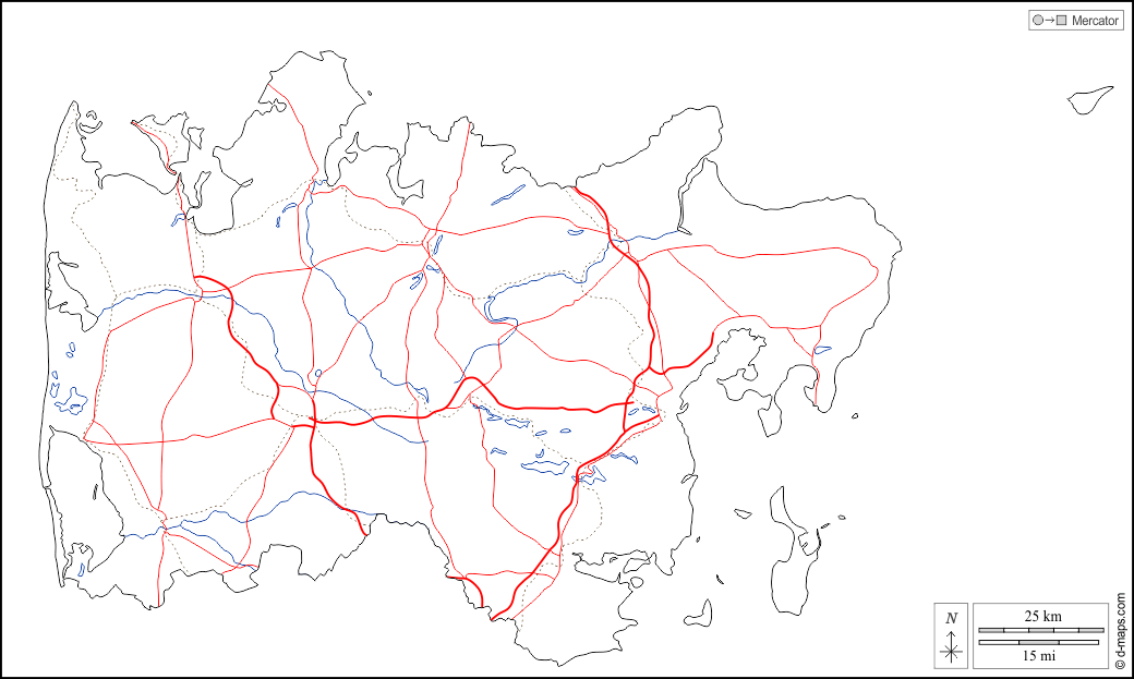 Aarhus, Herning, Holstebro, Horsens, Randers, Silkeborg, Skive, Viborg.