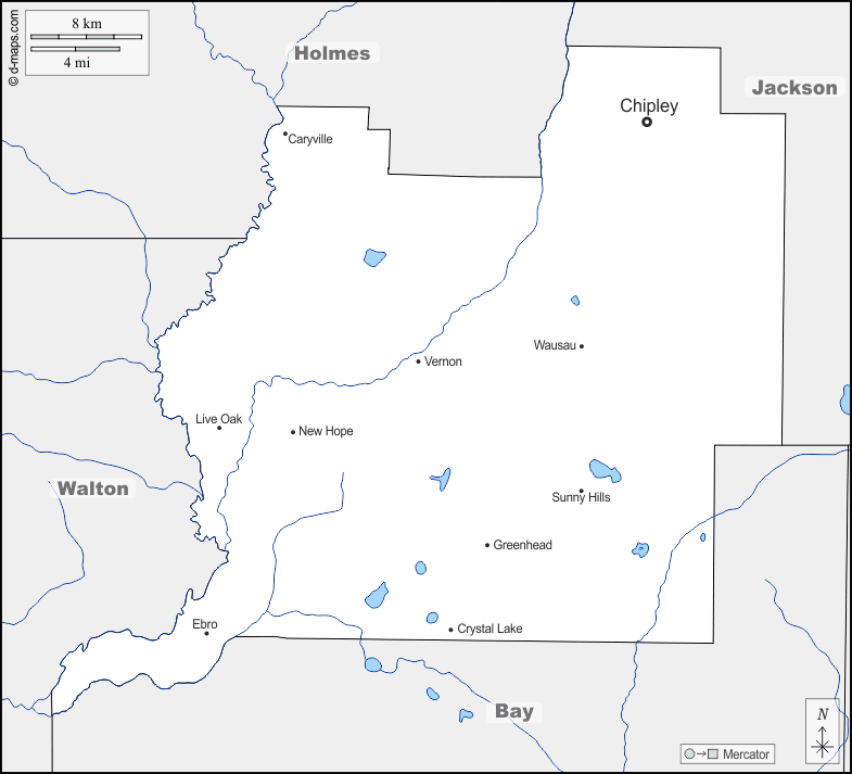 d-maps > 美国 > 佛罗里达州 > 华盛顿县 > 边界, 水文学, 主要城市, 名称
