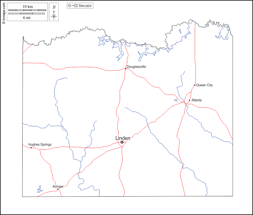 Atlanta, Avinger, Douglassville, Hughes Springs, Linden, Queen City.