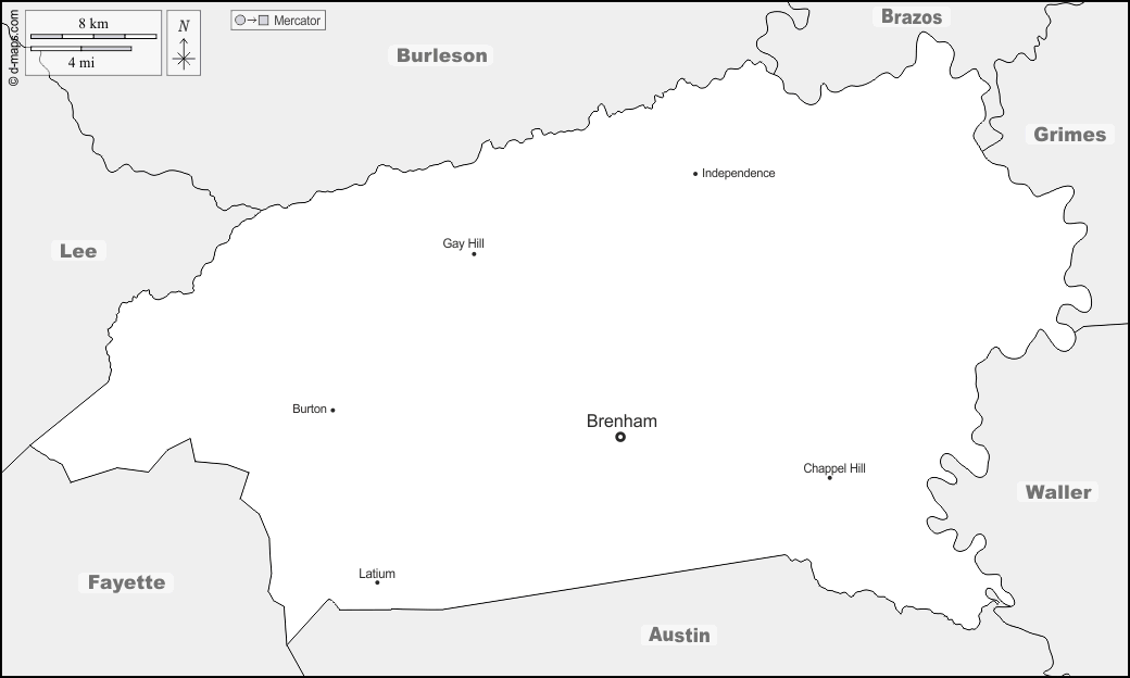 Brenham, Burton, Chappel Hill, Gay Hill, Independence, Latium.