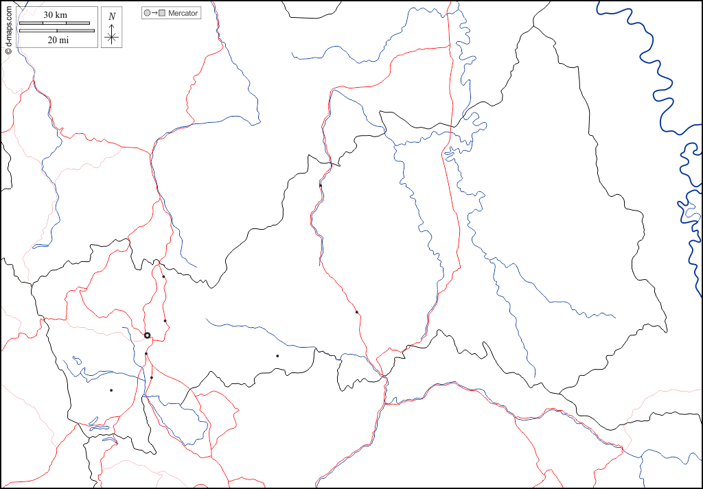 d-maps > 美洲 > 秘鲁 > 帕斯科大区 > 边界, 水文学, 主要城市, 道路, 白